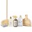 Why not add a touch of elegance to your cleaning routine? The set has stunning stained walnut and natural wood finished pieces. This 7 piece set boasts an eco-bristled broom and brush, eco-filled fabric sponge, dustpan, surface cleaner, dish soap, and laundry liquid.