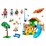 Set includes 1 man figure, 1 girl figure, 1 boy figure, 1 baby figure, 1 butterfly, 1 bird, 1 playhouse with climbing net, climbing wall, slide and swing; 1 crocodile seesaw, 1 tree, 1 bench, 1 wheel, 1 buggy, 1 flagpole with flag, 1 sand bucket, 1 sand shovel, 1 sand rake, 1 sand sieve, 1 watering can, 1 teddy bear, 1 shoulder bag, 1 apple, 1 water bottle, 1 hair bow, 1 beard