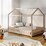 Oikiture Kids Wooden Bed Frame House Beds Platform Double Natural Timber Pine