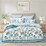 -Painterly florals in serene blue and teal tones on a neutral backdrop.