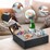 CARLA HOME Wooden Couch Cup Holder Tray with Soft Silicone & Rotatable Phone Holder for Storaging Drinks & Snacks