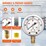- Durable Pressure Test Gauges: Crafted from robust 304 stainless steel, the pressure test gauges are built to withstand high temperatures and corrosive areas. The dial seal design prevents glycerin leakage, discoloration, and hardening, reducing internal friction and enhancing accuracy. We prioritize your ability to read pressure values accurately.