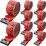 Winch Straps, 10.2 cm x 9.1 m, 2.7T Load Capacity, 8.2T Breaking Strength, Truck Straps with Flat Hook, Flatbed Tie Downs Cargo Control for Trailers, Farms, Rescues, Tree Saver, Red (10 Pack)