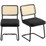 Rattan Chairs, Set of 2, Mid Century Modern Dining Chair, Upholstered Velvet Accent Chair with Rattan Back, Retro Dining Room Kitchen Chair for Living Room, Bedroom, Reading Room, Office, Black