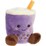 - Design: Fluffy purple exterior with a frothy white finish and boba straw