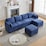 HOMFURN 4 Seater Modular Sectional Sofa with Storage, U Shaped Sectional Couch for Living Room, Convertible Modular Sofa Couch with Ottomans, Blue