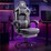 Advwin Gaming Chair with Footrest Linen Fabric Ergonomic Office Chair with Linkage Armrests High Back Computer Recliner Chair Gray+Purple