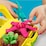 • 5 PLAY-DOH CANS: 2-ounce cans of modeling compound include yellow, light green, red, plus 2 dual-color cans of blue/green and pink/purple (contains wheat)