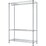 The unit features a chrome hanging rail and three adjustable shelves that can be set at any height along the metal poles, allowing for versatile storage.