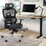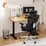 Oikiture Office Desk and Chair Set Mesh Ergonomic Chair Sit-stand Desk Black&Oak