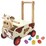 This sturdy wooden ride-on walker is designed to help little ones learn while having fun. It features shape sorting side panels with six shape sorting blocks, and the seat lifts off for easy storage of the blocks and other favorite items. The walker includes EVA rubber-trimmed wheels for floor protection, soft fabric ears for added charm, and easy-grip handles for safety. Made from organic rubber wood and non-toxic, child-safe paints, this toy promotes motor skills and provides endless hours of enjoyment. Adult assembly required, with some parts partially assembled.