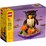 - Adorable LEGO® model of a Halloween Owl toy on a display platform with 2 Halloween pumpkins and autumn flowers.