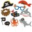 Aye Aye Captain! Have some fun with these pirate-themed photo props! Featuring octopus eyes, a pirate hat and beard, a scallywag shark and a skull and crossbones flag this set of props is perfect for taking candid snaps of the kids at your Pirate party - simply set up a table, tent or booth and have each child select a prop for photos or selfies of their best arrrrrrh me hearties pirate impersonation!