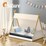 The bed frame's teepee-inspired design adds a touch of enchantment to your child's room. Its playful appearance sparks creativity and encourages imaginative play, making bedtime a delightful adventure. Crafted with safety in mind, this bed frame is built with a sturdy and durable pine wood, ensuring it can withstand the energy of active kids. The wooden frame provides reliable support, and the linen roof is securely attached, guaranteeing a safe sleeping environment. The linen roof not only completes the teepee look but also creates a cozy and secure sleeping space. It adds an extra layer of comfort and protection while providing a whimsical atmosphere that kids will love. Our teepee bed frame is designed for easy assembly, ensuring a hassle-free setup, so your child can start enjoying their new sleeping adventure in no time. We prioritize quality and safety. The materials used in this bed frame are non-toxic and child-friendly, providing peace of mind for parents.