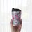 - A double-walled insulated travel mug with floral print design