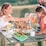 - A set contains a lunch box, 10 fruit forks, 4 silicone cups, 1 sauce container, and 1 spoon.