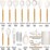 - A Set(1 X Solid Turner + 1 X Solid Spoon + 1 X Slotted Turner + 1 X Pasta Sever + 1 X Slotted Spoon + 1 X Soup Ladle + 1 X Spatula + 1 X Round Spatula + 1 X Basting Brush + 1 X Egg Whisk + 1 X Kitchen Tongs + 10 X Hooks + 1 X Silicone Mat + 1 X Utensils Holder + 5 X Measuring Spoons + 5 X Measuring Cups)