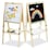 Designed for young artists aged 3 years and above, this dual-sided easel features a chalkboard on one side and a dry-erase surface on the other, giving kids multiple ways to bring their colourful ideas to life. With a height-adjustable frame, the easel grows alongside your child, providing years of imaginative fun. The built-in storage shelf ensures that the included markers, chalk, magnets, and eraser stay organised and within reach, making both playtime and clean-up a breeze. Whether it's doodling, learning shapes, or proudly displaying their creations, this wooden easel is the ultimate creative companion for kids.