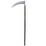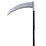 - Costume scythe design features a a silver slightly arched blade sitting atop a black pole.