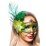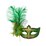 - The flower sits on a background of tall green feathers and gold tinsel stiff net. Green coloured ribbons are used to tie the mask on.