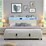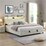 HOMFURN King Size Gas Lift Bed Frame with LED Lights and Charging Station, Modern Upholstery Bed Storage Headboard, Beige