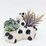The Hugging Cows Planter is a charming decorative piece that features adorable black and white cow figures embracing a planter. Measuring 12cm in height, this delightful item adds a whimsical touch to any space, making it perfect for displaying small plants or succulents. Crafted with attention to detail, the cows' friendly expressions and playful pose create a heartwarming accent for your home or garden, allowing you to showcase your love for nature and animals alike. Its compact size ensures it fits well on tabletops, windowsills, or as a unique gift for animal lovers.