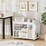 This well-designed rolling side table offers ample storage with a spacious countertop, 3 compartments, and a handy side storage rack.