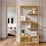 Unique Shelves With multiple shelves of varying heights, this unit accommodates a wide range of items, from books and decorative pieces to plants and boxes, allowing for easy access to items, its unique asymmetrical design adds a touch of modern flair while creating a visually interesting look, the bottom cabinet with a slatted door, offers concealed storage to keep your belongings organized and dust-free