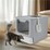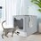 FIN Stainless Steel Enclosed Cat Litter Box Top Exit Pet Toilet Box w/ Litter Scoop
