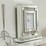 FIN Clear Mirrored Desk Clock Crushed Diamond Art Clock Silver Glass Nightstand Clock