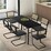 Oikiture 140cm Rectangle Dining Table with 6PCS Dining Chairs Leather Black