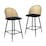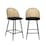 Oikiture Bar Stools Kitchen Counter Stool Rattan Dining Chair Velvet Fabric Black x2