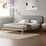 Oikiture Wooden Bed Frame with Padded Fabric Edges Pine Headboard Base (Queen)