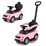 This push ride on can be easily converted into a walking car or a sliding car with its removable push handle and guardrail, as well as retractable footrests. Equipped with wear-resistant wheels, the ride on toy traverses well on different surfaces. It is fun to drive with the steering wheel featuring horn and starting sounds. Comfort and stable are top priorities, with a cozy backrest, spacious seat, and anti-rollover device. The under-seat storage space allows easy access to items.