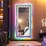 Innovative Technology This wall hanging mirror features an innovative design that incorporates cool RGB light with crush diamonds adorning the edge, the combination of these elements creates a visually striking effect, enhancing overall aesthetic appeal of the mirror, the edge is also treated with beveled process, adding a sense of depth, serving as a functional mirror also as an artistic statement piece in interior design