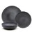 12pc Salt & Pepper Dinner Set - 4 Person Stoneware Dining Plates Bowls - Modern Stone Dinnerware Set