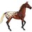 A flaxen red chestnut blanket appaloosa pattern spices up this athletic Thoroughbred sport horse sculpted by a long-time Breyer equine artist admired for her detailed work. How many different horses can you “spot” in his coat?
