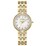- Contemporary design meets upscale refinement with this Bulova ladies' box set from the crystal collection. The polished gold-tone stainless steel case is carefully set with 68 crystals, creating a graceful outline that traces the matching bracelet with a further 48 striking crystals. Under the mineral crystal, the lustrous mother-of-pearl dial is accented with a gold handset and 11 crystal hour markers. Accompanying the impressive timepiece is a gold-tone necklace with alternating heart pendants in mother-of-pearl with 86 crystals. A perfect pairing for the glamorous woman, this Bulova ladies box set will elevate any jewelry box.