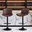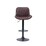 Each stool features a padded, contoured seat upholstered in premium brown faux leather with elegant vertical stitching. The smooth gas-lift mechanism and 360° swivel allow seamless adjustment and movement, while the matte black metal base ensures lasting stability and sleek aesthetics.