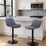 Each stool features a padded, contoured seat upholstered in premium grey faux leather with elegant vertical stitching. The smooth gas-lift mechanism and 360° swivel allow seamless adjustment and movement, while the matte black metal base ensures lasting stability and sleek aesthetics.