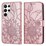 Galaxy S23 Ultra Wallet Case 3 Credit Card Slot ID Card Holder, PU Leather Flip Case - Pink