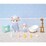 The shower caps and bubbles can be placed on the figures' heads. The adorable bottles and soap are shaped like the Marshmallow Mouse figures. The soap can be placed in the soap tray of the shower and the bottles and bath toys can be placed in the rack. The boy and cradled baby are wearing outfits made from soft towelling material.