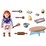 Figures: 1 woman; Accessories: 1 cooking spoon, 1 table, 1 tray, 1 donut, 1 muffin, 1 eggs, 1 milk, 1 bowl