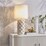 A lamp with modern air, the Smith Table Lamp is crafted entirely from ceramic.The simple form of the lamp is juxtaposed with textural accents that mimoc the organic shapes of nature applied by hand in a symmetrical order.The base is finished with an off-white crackled glaze and topped with an off-white linen drum shade.