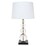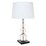 Cherished for its shapely stack of solid crystal glass spheres, detailed with a gold stem.The square black marble base brings such elegance to the Gabrielle Table Lamp.It will add such fresh personality to your home.The Gabrielle is topped with a white linen drum shade.A definite show piece in any room.