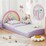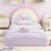 With a height of just 14 cm, it's ideal for toddlers moving from co-sleeping or cribs, featuring delightful unicorn, star, and rainbow patterns that appeal to young imaginations. The 210D oxford cloth mat and center slat shield the mattress from dust and moisture, creating a clean sleeping surface, while the cushioned headboard, side rails, and footboard offer a secure and cozy setting. Compatible with standard single box spring mattresses between 15.2-20 cm thick, the floor bed frame securely holds the mattress in place for a peaceful night's rest. A thoughtful and enchanting gift, our kids' bed frame is sure to be a treasured companion during your child's early years of growth and development!