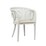 The Solstice Dining Chair features a distinctive and iconic sun design, combining natural rattan and mahogany for a blend of durability and aesthetic appeal. The chair is further enhanced with an upholstered seat, providing comfort alongside its stylish design. The white finish adds a touch of elegance, making it a versatile piece for various dining settings.