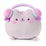 -Soft, extra-squishy Squisheen in a lounging pose with pink and blue headphones