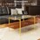 Transform your living space with our mid-century modern coffee table, where vintage charm meets modern practicality. Crafted with an exquisite amber-colored tempered glass top that resists scratches, heat, and water, this accent table ensures longevity and effortless upkeep. Flaunt your decorations and keep essentials at hand with its spacious storage shelf. Supported by a robust metal frame capable of holding up to 80 kg and designed with sleek golden legs, it's not just a table-it's the highlight of any room! Plus, cleanup is a breeze with its thoughtful high-clearance design. Why wait? Elevate your home with this must-have centerpiece today!