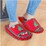 These slippers bring holiday cheer to your home with a festive design featuring deep green yuletide pines and ornamental stars, paired with a Christmas red base. They make cleaning fun and seasonal.